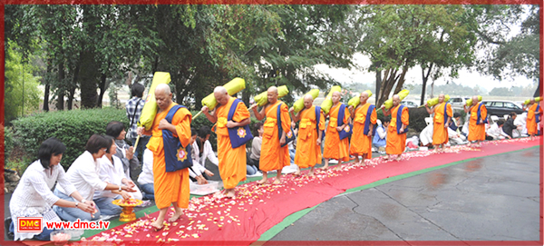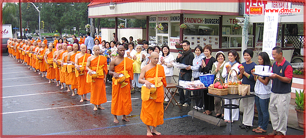 The fund will be spent to build the Master Nun Centennial Building but the joyfulness I would like to share. It was the world historic event happened in the first time in USA. That was the Dhammachai Pilgrimage and the Morning Alms Round of the new monks on the main routes in Azusa. The residents were very interested because they had never seen it before.